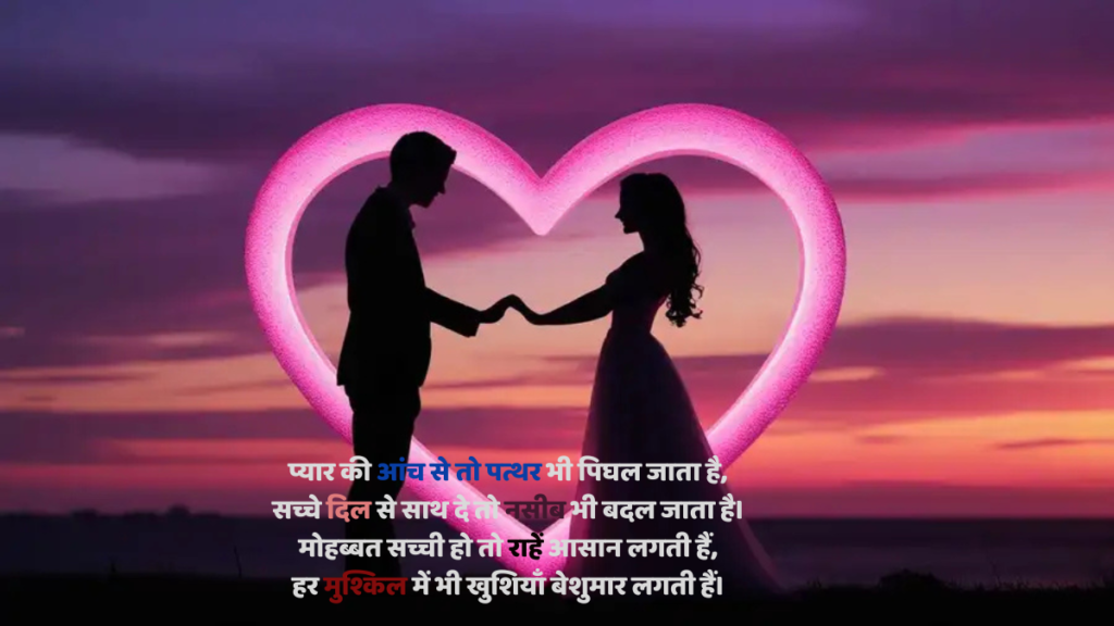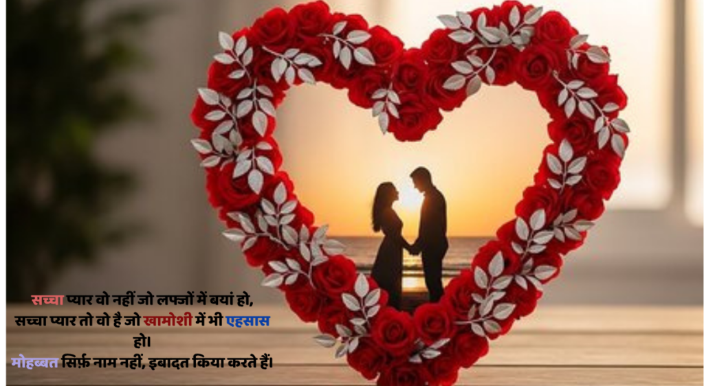 सच्चा प्यार प्यार बढ़ाने वाली शायरी सच्चे इश्क़ की मोहब्बत भरी गहराइयाँ सच्चे प्यार की गहराई और अनोखे एहसासों को प्रकट करती यह शायरी आपके दिल को छू जाने वाली मोहब्बत के जज़्बातों को खूबसूरती से बयाँ करती है। इसमें त्याग, समर्पण, विश्वास और आत्मा की सच्ची जुड़ाव की बातें हैं,