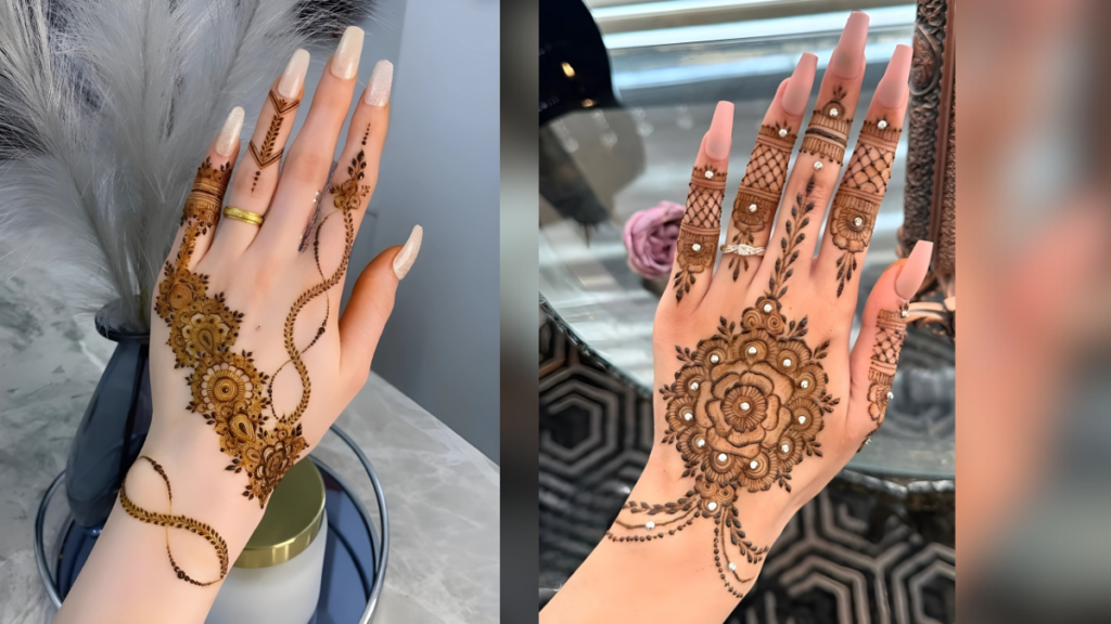 चाहे शादी हो, करवा चौथ या ईद – इन डिज़ाइन्स से हाथों की रौनक बढ़ती है।