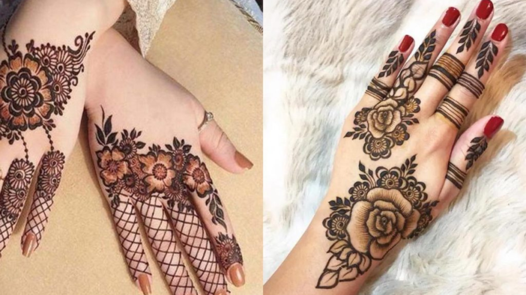 नाजुक और खूबसूरत फूलों के डिज़ाइन जो विशेष अवसरों पर हाथों को सजाते हैं।