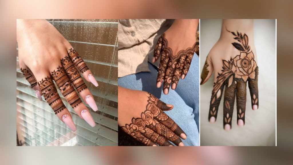 फिंगर मेहंदी डिज़ाइन 2025 में मिनिमलिस्टिक, फ्लोरल और ज्यामितीय पैटर्न ट्रेंड में हैं। ये डिज़ाइन उंगलियों को खूबसूरत और स्टाइलिश बनाते हैं, हर खास अवसर के लिए परफेक्ट विकल्प हैं।