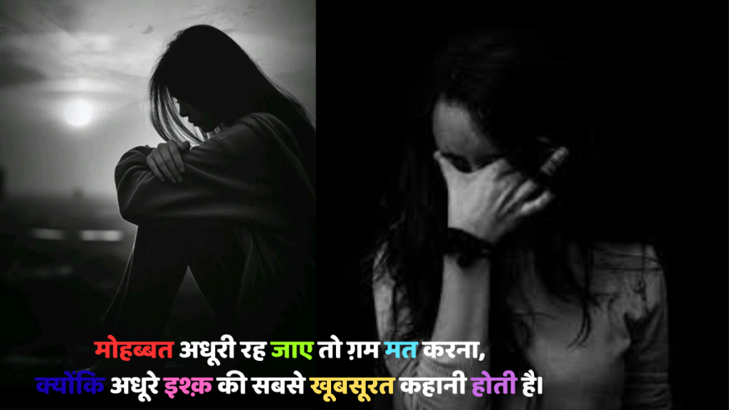 Hindi sad shayari गहराई से भरी शायरी, जो टूटे दिल की पीड़ा को बेहद खूबसूरती से बयां करती है। हर शब्द में दर्द और एहसास छुपा है इस शायरी में अधूरी मोहब्बत और जज़्बातों का वह दर्द है जो हर दिल को छू जाता है, पढ़कर आप भी भावुक हो उठेंगे।