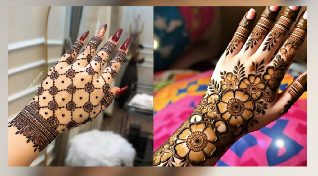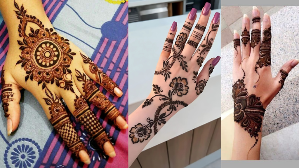सादगी और स्टाइल से भरपूर ट्रेंडिंग बैक हैंड मेहंदी डिज़ाइन हर मौके पर आपके हाथों की खूबसूरती बढ़ाएँगे और आपकी पर्सनैलिटी को देगा एकदम यूनिक और आकर्षक अंदाज़।