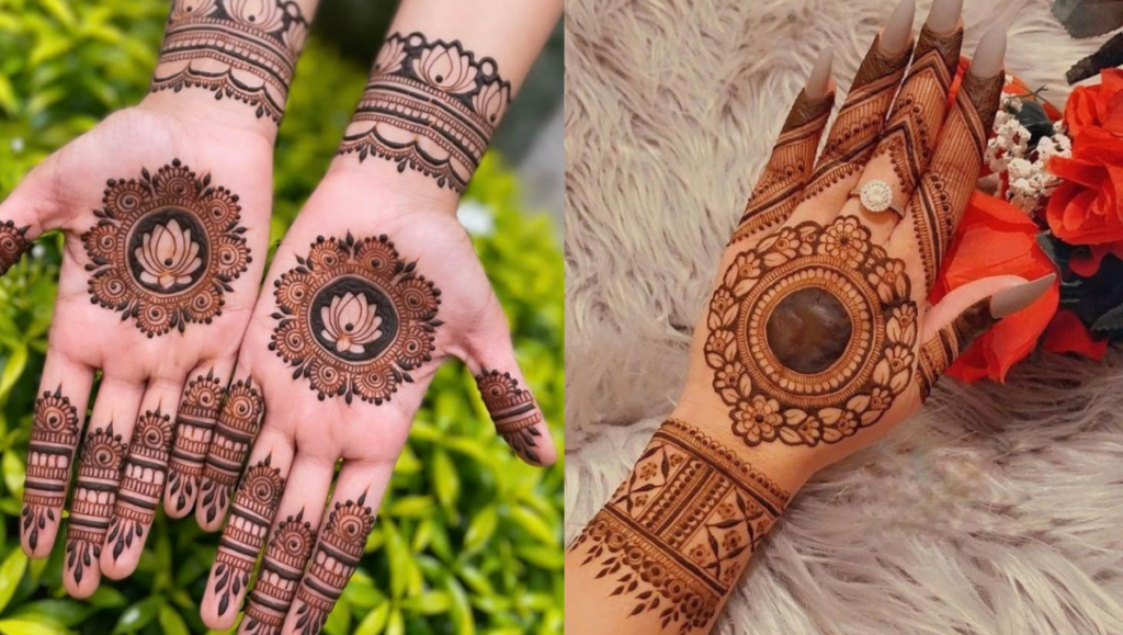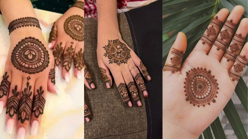 गोल टिक्की डिज़ाइन हथेली के बीच में सिंपल गोल आकृति के साथ बनती है।