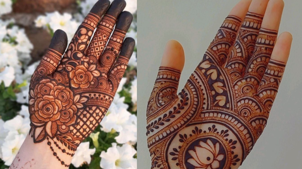 यह परंपरागत व आधुनिक मेहंदी डिजाइनों का सुंदर मेल है।