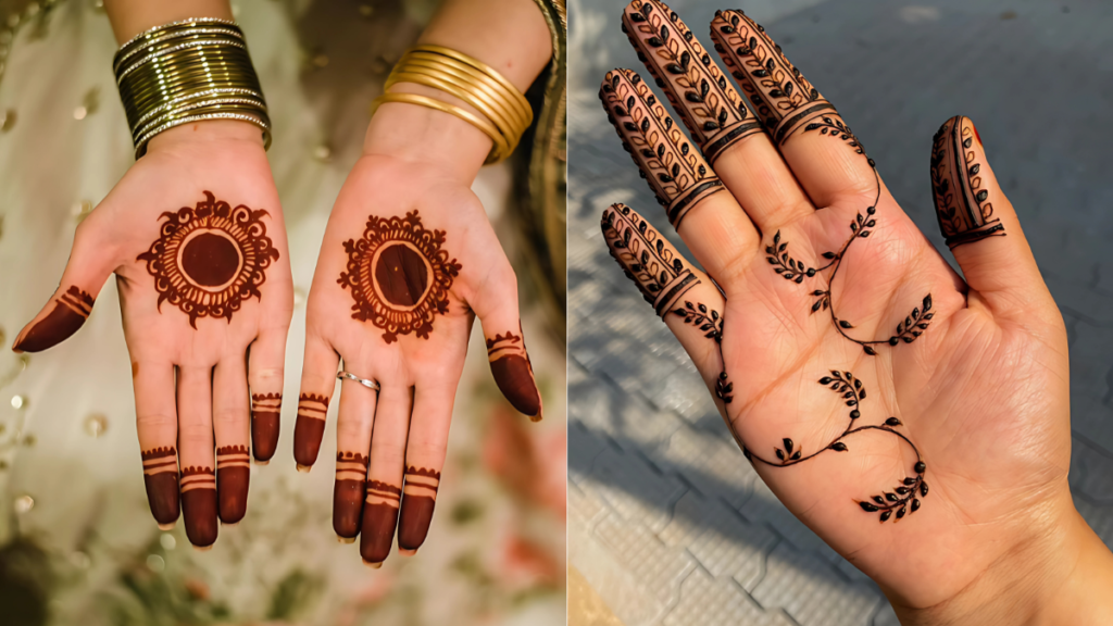 यह मेहंदी डिजाइन हर शादी, पार्टी और त्योहार के लिए बेहद प्यारी और सरल होती हैं, जो आपके हाथों की खूबसूरती को बढ़ा देती हैं। इन डिजाइनों को लगाना आसान होता है और वे हर मौके पर परफेक्ट लगती हैं।