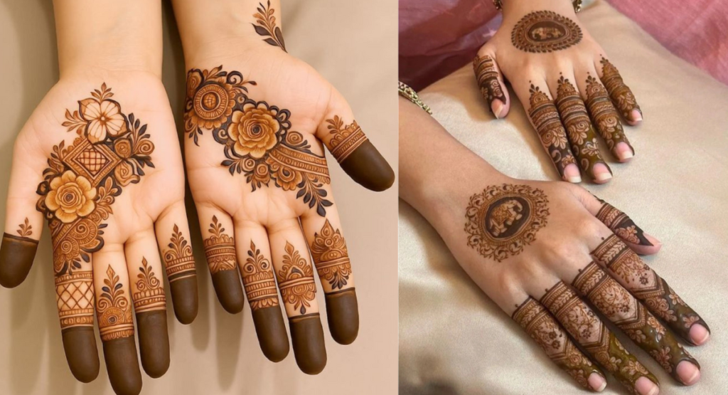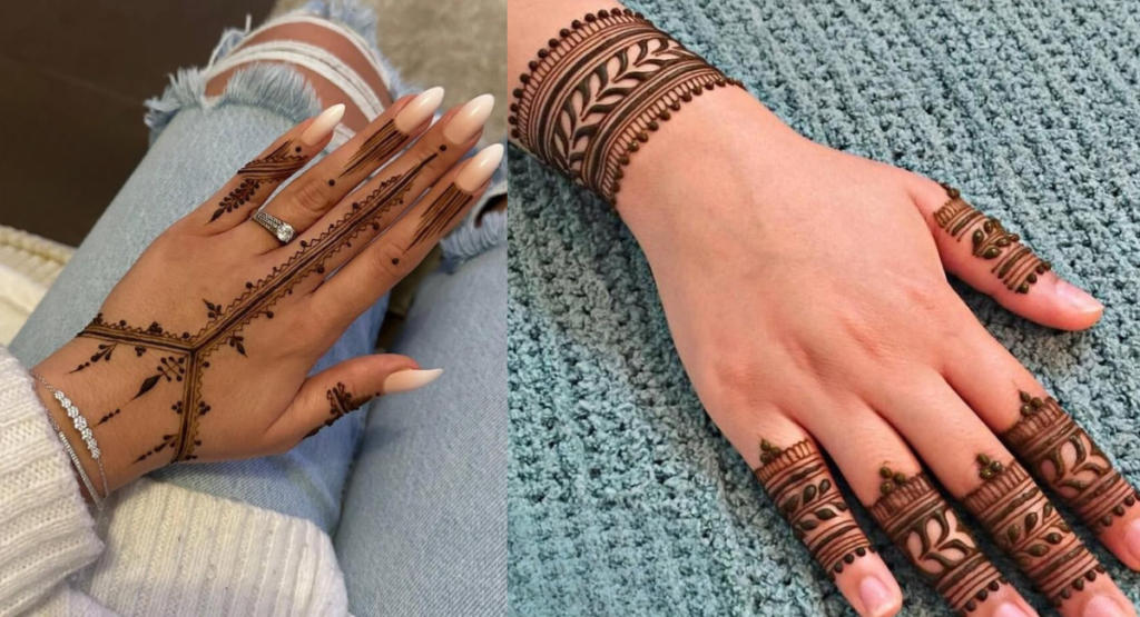 इनके जटिल बॉर्डर और सिमेट्री मेहंदी को आकर्षक बनाते हैं।