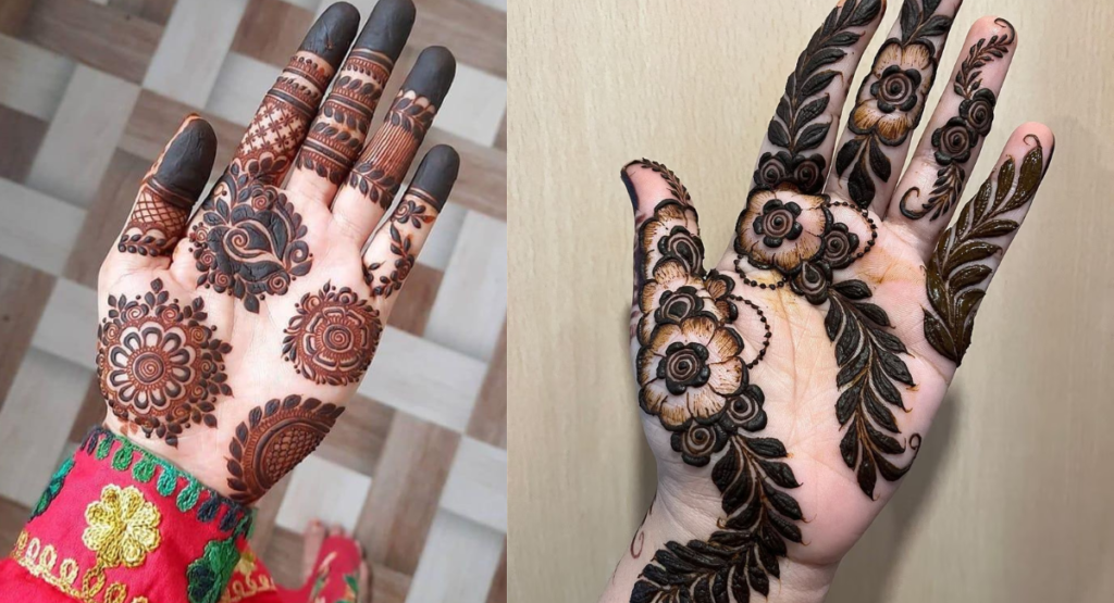 फूलों और मंडलाकार डिज़ाइन का मिलाजुला पैटर्न किसी भी हाथ को खूबसूरत बना देता है।